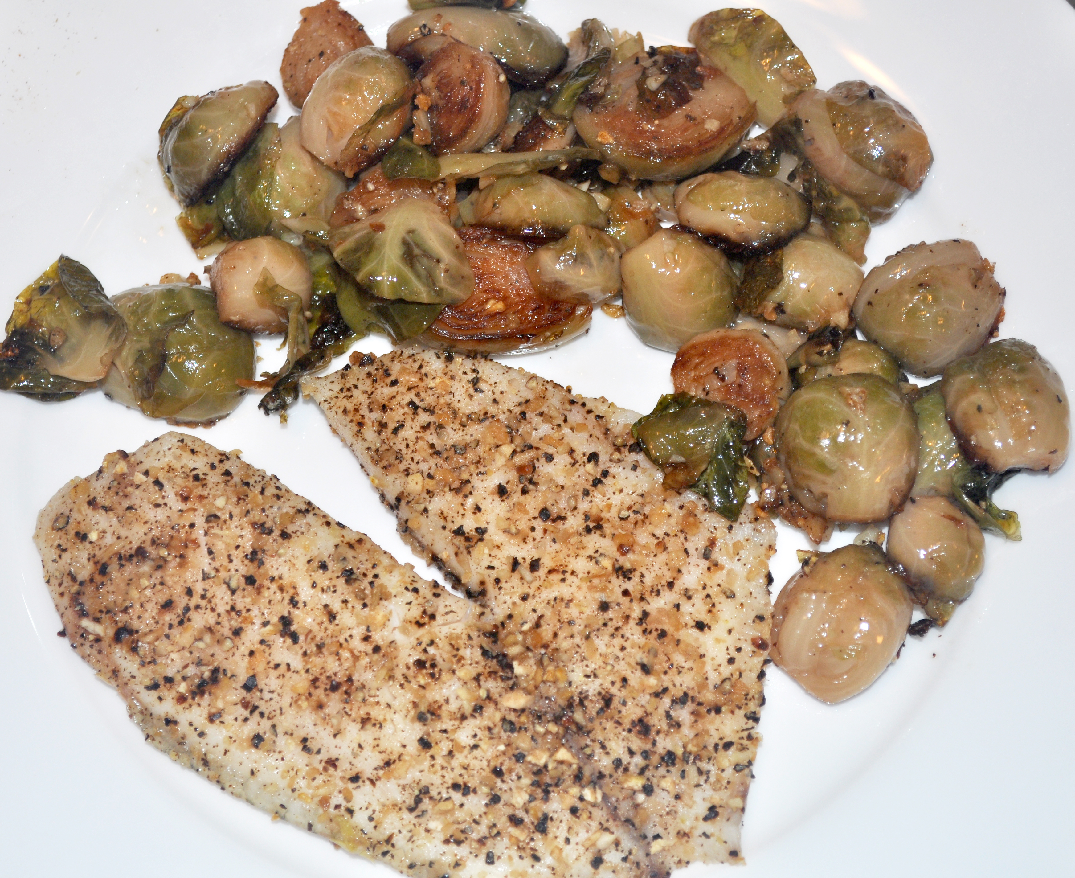 D: Lemon pepper tilapia; lemon garlic brussels sprouts (recipe here!).